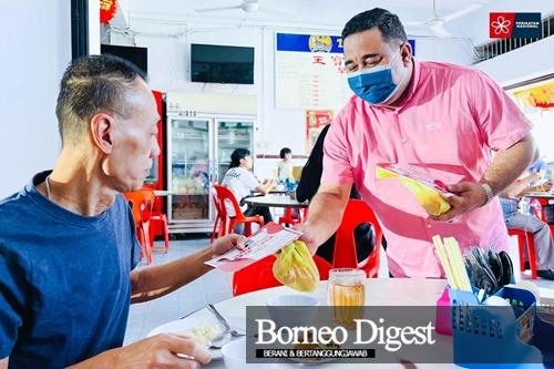 KETUA Bersatu Lahad Datu, Abdul Hakim Ghulam menyantuni masyarakat Tionghua di sekitar bandar dan Fajar Centre sempena sambutan Tahun Baru Cina 2022.