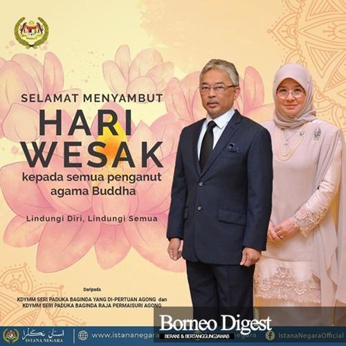 Menurut kenyataan Istana Negara menerusi laman sosial rasmi Facebook, Seri Paduka Baginda berdua menzahirkan harapan semoga hari yang bermakna buat mereka yang menganut agama Buddha ini disambut dalam kebiasaan baharu dengan mengutamakan keselamatan diri, keluarga dan masyarakat.