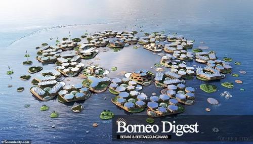 Meskipun saiz sebenar masih belum ditentukan namun perkampungan besar seluas 75 hektar di bandar terapung itu dianggarkan boleh menampung lebih 10,000 penduduk. – AGENSI