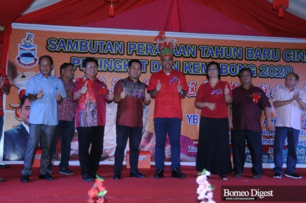 Jamawi (empat kiri) bersama Timbalan Menteri Dalam Negeri (KDN) Malaysia Datuk Azis Jaman di majlis sambutan Tahun Baru Cina Kemabong