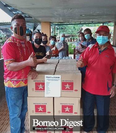 SUMBANGAN kemanusian – Komuniti Kristian Dasar (KKD) St Joseph Lingkudou menyumbangkan air mineral sebanyak 55 kotak dan 10 kotak pakaian terpakai untuk mangsa-mangsa banjir di Daerah Tenom dan Beaufort.